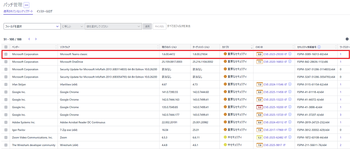 インストールされているソフトウェアのパッチ管理機能*も有しており、